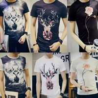 夏季男士短袖T恤圆领体恤打底衫日系3D印花学生半袖修身上衣潮流