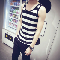纯棉背心男士修身型青年黑白条纹运动坎肩中大学生青少年夏季背心