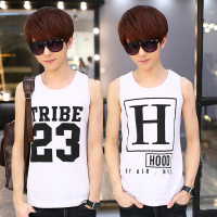 男士背心纯棉青年修身型夏季学生青少年韩版潮坎肩紧身跨挎栏马甲
