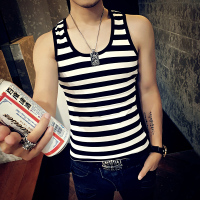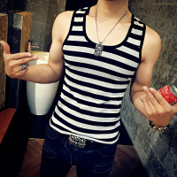 男士条纹背心坎肩两根筋 青少年韩版纯棉紧身运动学生打底汗衫潮