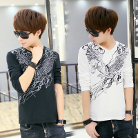 男孩秋季纯棉长袖t恤青少年时尚潮流大童中学生修身韩版V领打底衫