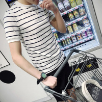 短袖T恤男夏季韩版修身青少年圆领条纹男士t恤学生高领半袖男装潮
