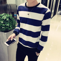 长袖t恤男秋季圆领卫衣男小衫韩版休闲条纹打底衫男秋装上衣服潮