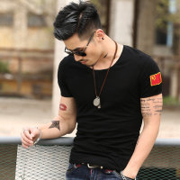夏季军装男刺绣国旗中国短袖t恤体男士半袖部队特种兵修身V领衣服