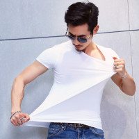 包邮男士短袖t恤纯色圆领t桖鸡心领修身紧身半截袖男衫短衫打底衫