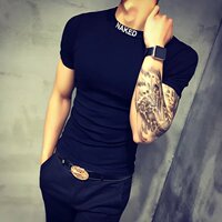 夏季男士紧身短袖t恤圆领纯色打底衫半袖修身上衣服黑白色潮男装
