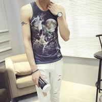 夏季男士印花背心潮流修身韩版时尚纯棉大码休闲无袖T恤男款外穿