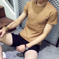 男士短袖t恤圆领纯白色体恤男潮修身纯色紧身夏季打底衫半袖衣服
