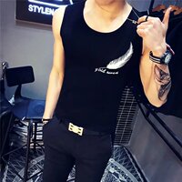 100%纯棉 男士夏季汗背心修身运动跨栏休闲潮四季打底杉全棉汗衫