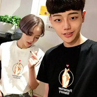 韩版夏季修身短袖t恤男女情侣百搭爱心T恤半袖休闲青少年圆领上衣
