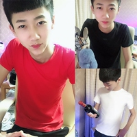 夏季男士体恤短袖V领修身薄款纯棉半袖青年纯色冰丝紧身弹力t恤男
