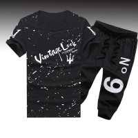 夏季男士短袖T恤韩版休闲套装2018新款一套潮流半袖衣服修身夏装