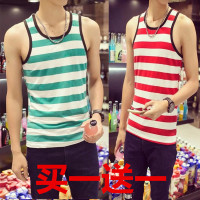 韩版修身型背心男潮打底紧身青年男士弹力夏季汗工字背心条纹包邮