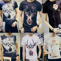 男士春夏季新款打底衫衣服短袖T恤学生潮流个性印花圆领修身体恤