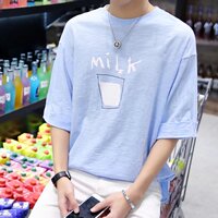 男韩版韩国宽松学生5分衣服7分中袖潮流上衣 夏季男士七分短袖t恤