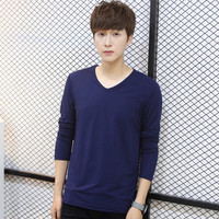 秋季V领小衫男士长袖T恤桖薄款衣服男装打底衫纯棉青少年体恤夏装