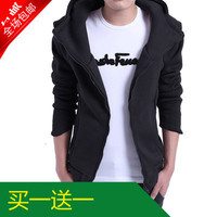 秋冬季男士全棉修身版带帽外套夹克上衣服青少年春季外衣潮连帽衫