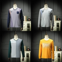 夏季男士长袖T恤V领小衫薄款上衣服男装打底衫纯棉青少年体恤秋衣