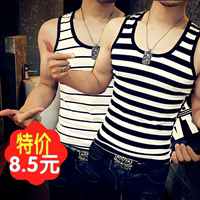 男士修身型纯棉背心青年黑白条纹运动坎肩高中学生青少年夏季汗衫