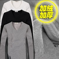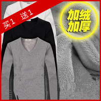 秋冬季加绒加厚保暖男装男士长袖T恤圆V领小衫潮打底衫体恤秋衣服