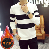 秋冬装长袖T恤男加绒青年韩版潮圆领卫衣加厚保暖上衣服打底衫男