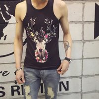 背心男士紧身修身型美女印花健身运动打底韩版弹力纯棉青年汗背心