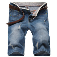 5分男牛仔短裤男夏天修身五分裤破洞潮牌中裤宽松直筒大码七分裤
