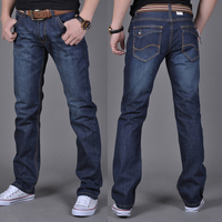 春秋季大码宽松男士商务休闲直筒时尚青年男中腰加大牛仔裤男