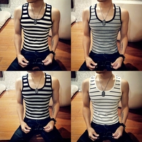 2017夏季新款男士背心纯棉修身型青少年条纹坎肩韩版潮流运动弹力