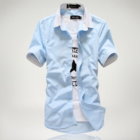 夏日休闲短袖衬衫男士休闲韩版衬衣修身型青年大码薄款半袖寸衣男