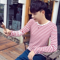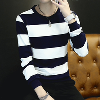 9.9包邮秋冬男士长袖T恤韩版修身青少年条纹打底衫大码男长袖上衣