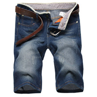 夏季薄款牛仔裤男士牛仔短裤男中裤弹力韩版五分裤潮男裤破洞马裤