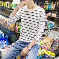 EXO林弯弯权志龙同款春秋季韩版修身男士长袖条纹T恤衫衣服潮薄款