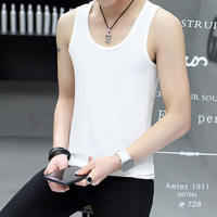 夏圆领背心男士纯棉紧身弹性青年运动汗衫工字背个性印花修身潮