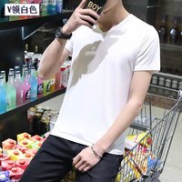 青年夏季薄款简约短袖T恤男式V领修身弹力男士夏天体恤衫 9.9包邮