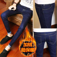 秋冬季加绒款牛仔裤男修身型韩版加厚长裤子男士加棉青少年小脚裤