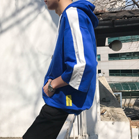 潮男t恤五分袖半袖连帽卫衣短袖男宽松韩版潮流学生带帽bf风帅气
