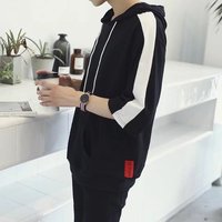 港风七分袖短袖t恤男中袖连帽卫衣男女款韩版潮流宽松夏季学生bf