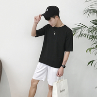 青年男士短袖T恤男夏季韩版宽松纯棉圆领潮体恤衫半截袖五分上衣
