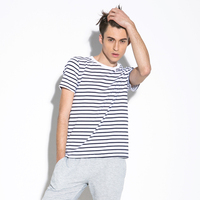 男士新款短袖T恤GXG Dream男装条纹贴布圆领修身短袖T桖青年汗衫