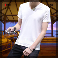 薄款莫代尔棉男短袖t恤纯白色v领修身半袖体恤打底衫青年衣服