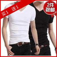 男士短袖t恤夏天V领韩版修身纯棉打底衫潮男装纯色休闲半袖上衣服