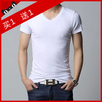 2017韩版男士纯白色t恤男短袖体恤纯色修身圆领t桖打底衫V桃领潮