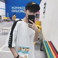 夏季五分短袖男bf半袖个性学生韩版潮流宽松中袖T恤嘻哈七分袖潮