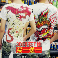 夏季鲤鱼图案纹身短袖男装T恤 霸气关公龙个性印花半袖衣服 潮男