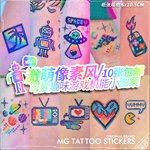10张包邮卡通可爱游戏像素风趣味小纹身个性男女防水纹身贴纸潮